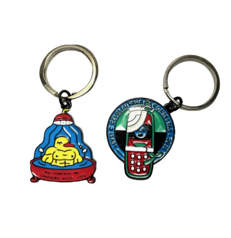 Chaveiro em zamac, banhado a niquel, e pintura colorida.