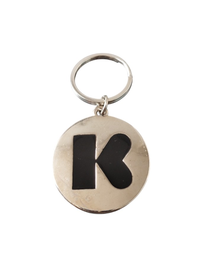 Chaveiro em zamac, acabamento em banho níquel, resinado em 1 cor, com argola italiana.