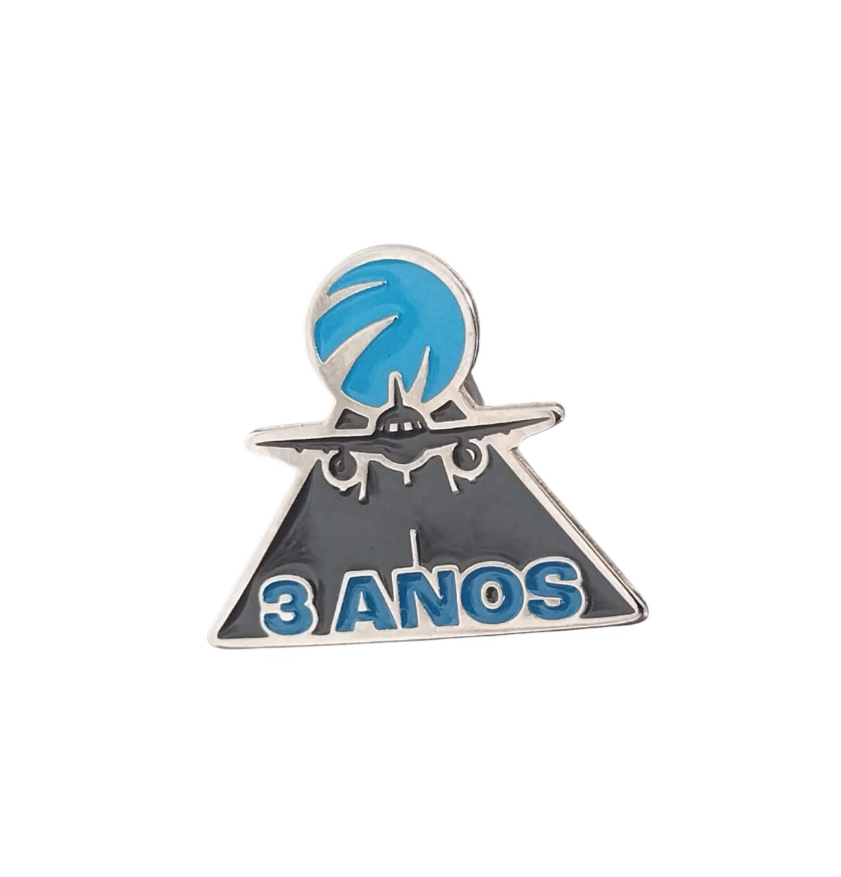 Pin feito em zamac, com acabamento em banho níquel, resinado em 3 cores. Com pino + tarraxa de silicone.