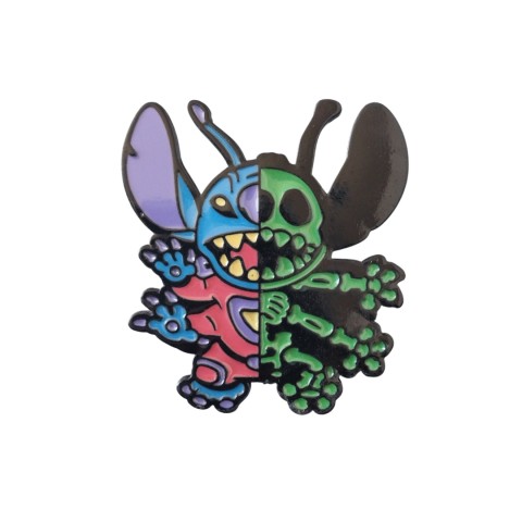 pin em zamac, acabamento em pintura p.u preta, resinado em 5 cores