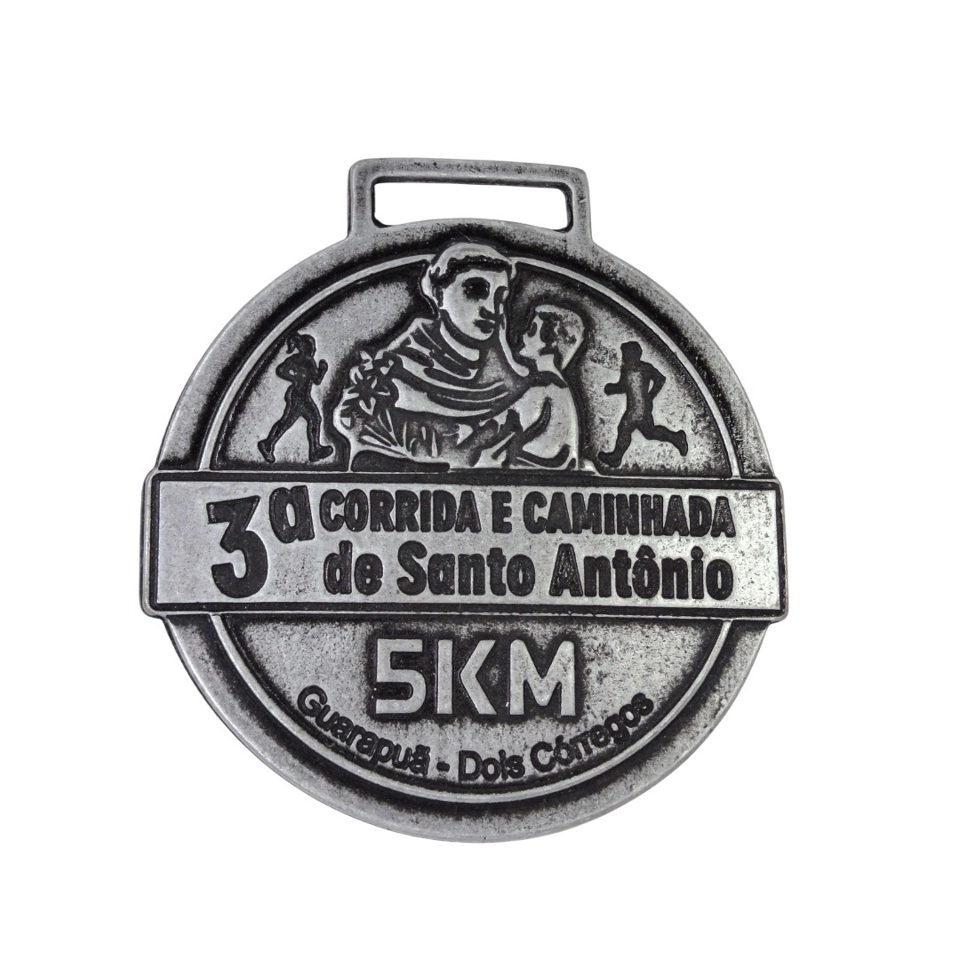 Medalha personalizada feita em zamac, com acabamento em Óxido Tamboreado, com detalhes em baixo relevo.