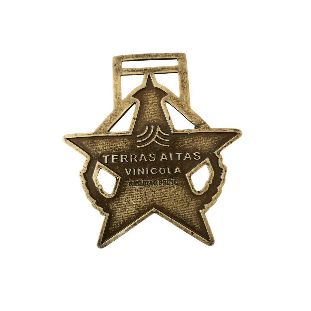 peça feita em zamac, banho ouro velho, com detalhes em alto/baixo relevo e vazado, com passador para fita de 2,5 cm.